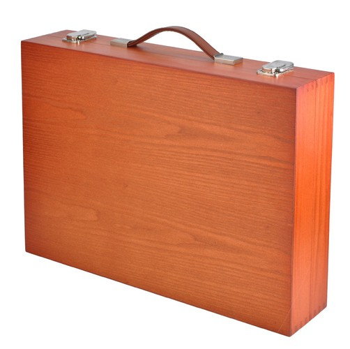 PRACTICAL SUITCASE – the whole thing is placed in an elegant, foldable, two-level, wooden suitcase, which increases its aesthetic value, as well as affects its durability; the suitcase has a durable, comfortable, leather handle, thanks to which transporting the full content is simple and comfortable; strong metal buckles guarantee that during transport the suitcase will be tightly closed and nothing will spill out of it or get lost; after finishing the original accessories, you can successfully fill the suitcase with new, your own accessories.