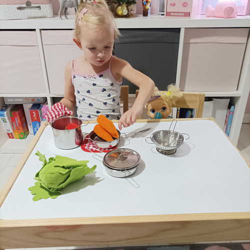 The product is perfectly reproduced, so it imitates real pots, and as we know, children imitate their parents, so it allows them to play together with their parents. A child can prepare dinner for their dolls or teddy bears. A set of silver pots allows for interesting play at home, bar, restaurant. The silver, classic color will match any kitchen, and the toddler will feel like a real chef. The toy not only allows for an interesting and joyful time, but also affects the intellectual development of the child and the growth of their motor skills. It develops imagination and stimulates creativity, and also teaches cooperation in a group and improves social and integration skills. The set is perfect for independent play and with adults or other children.
